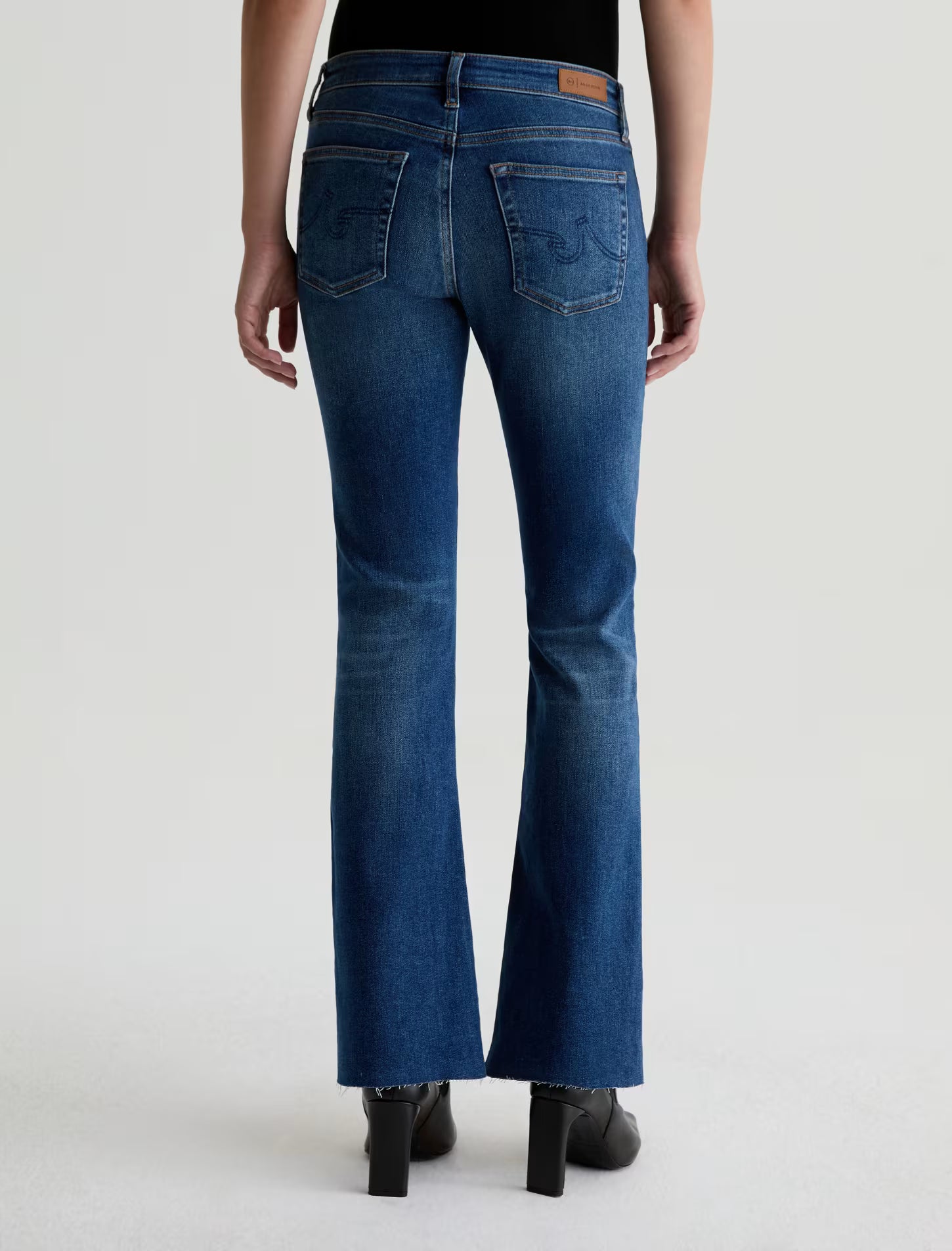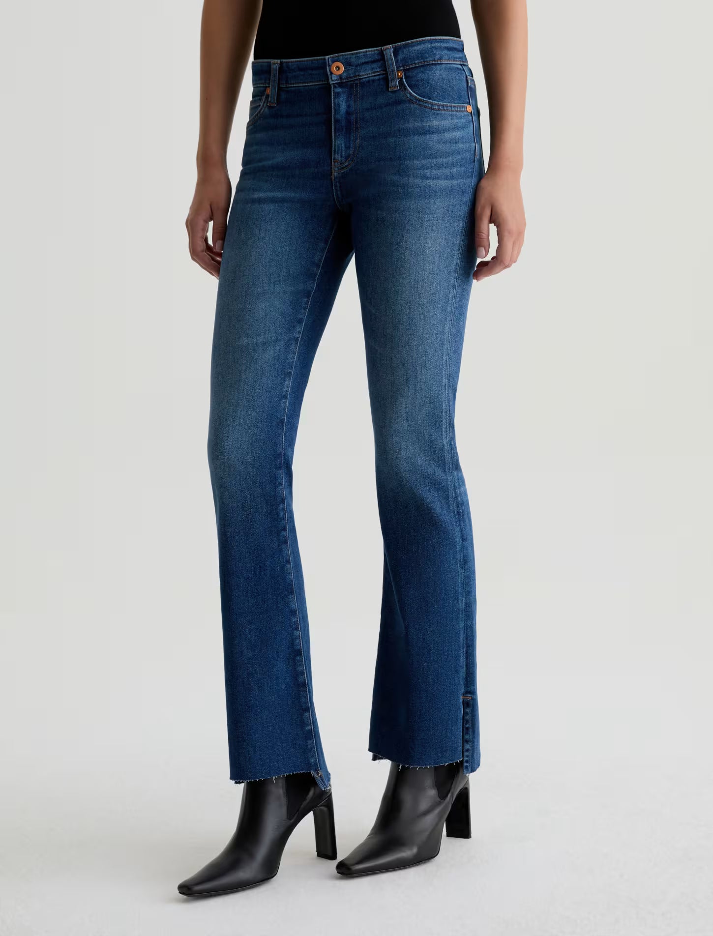 Angel is a women’s low-rise bootcut jean with a split hem design, crafted from vintage comfort stretch denim. AG-ed™ to replicate 12 years of natural wear for a naturally faded finish. The vintage comfort stretch denim offers an authentic look with added flexibility, delivering the feel of rigid denim with enhanced ease and comfort. Crafted from premium denim sourced from Italy’s Candiani Mill.