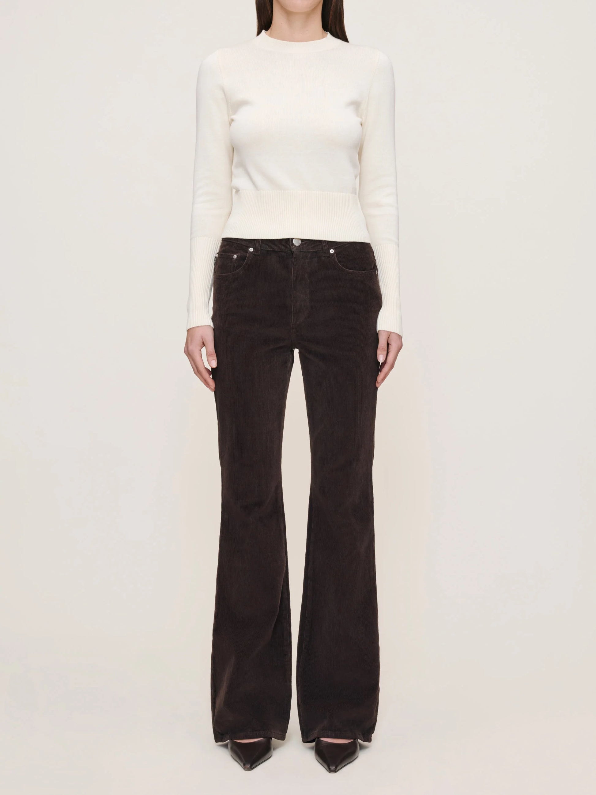 Meteorite is a rich brown corduroy. It features silver hardware, tonal stitching, a clean hem, and a small black patch.