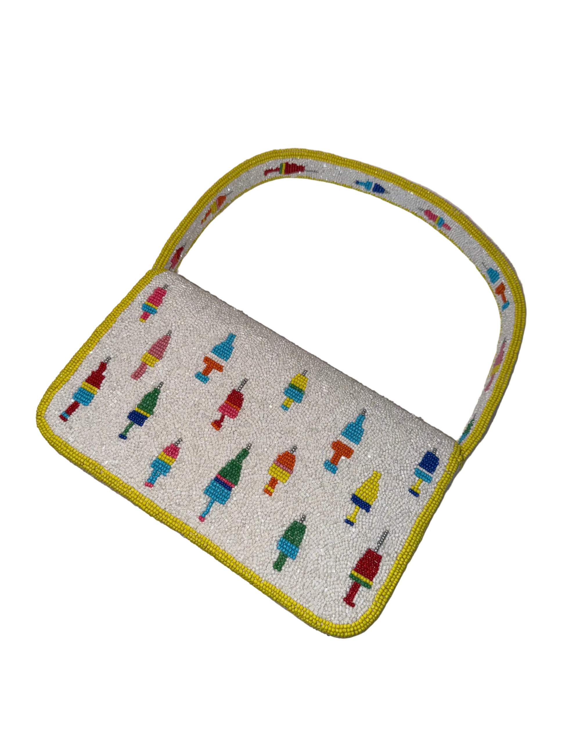 Capture that breezy coastal aesthetic with this cute shoulder bag adorned with colorful buoys. Handcrafted in India, this beaded shoulder bag adds a playful sparkle to any outfit.
