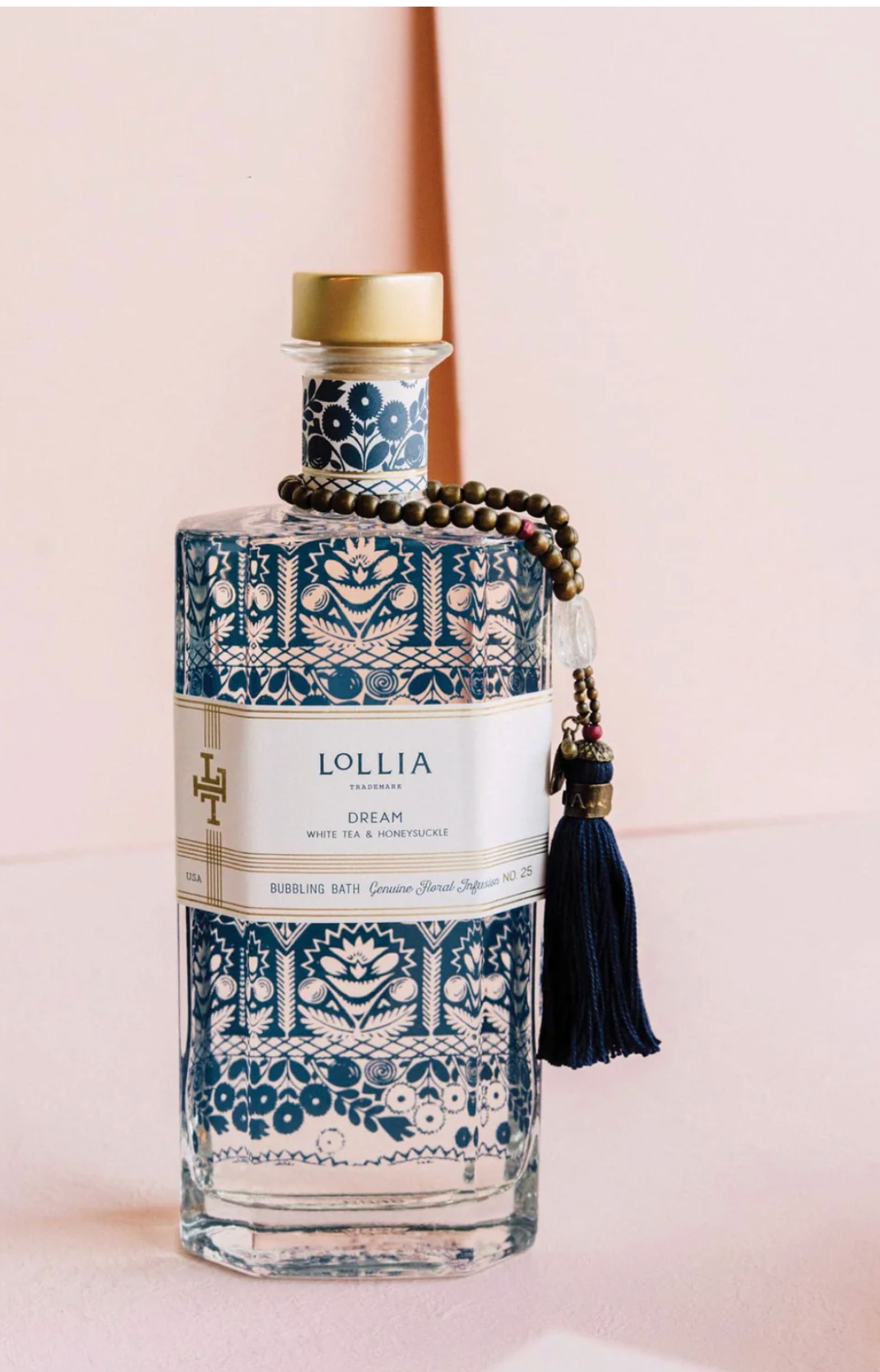 Drift away in luxurious bubbles. A dreamy fragrance combination of Linden, White Tea, Bergamot and Honeysuckle is sweetly familiar, like a pleasant memory while drifting off to sleep. Soft & soothing, Lollia's moisture-rich formulation of Olive Fruit & Avocado Oils leaves skin deliciously refreshed.