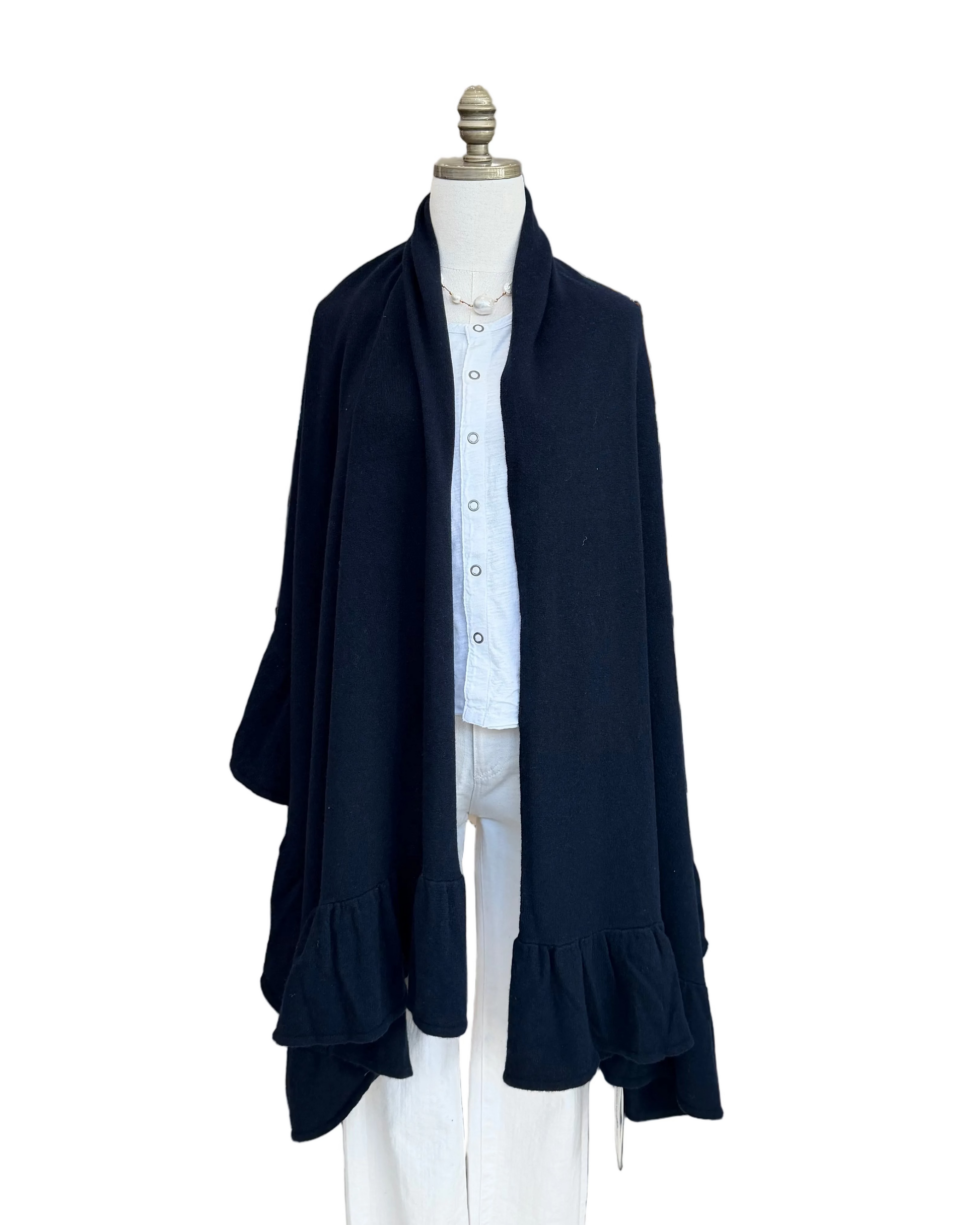 Introducing the Flounce Scarf - Luxurious cashmere scarf with beautiful flounce detail. An updated blanket scarf wrap. Perfect to keep the fall chill at bay. 100% cashmere.