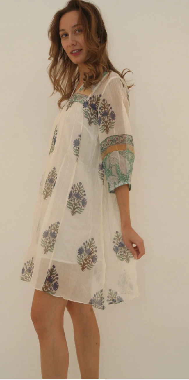 The Ibiza Dress Short is a year-round staple you’ll keep reaching for and includes a slip. Made from 100% handwoven Cotton Silk and detailed with vibrant hand block prints, it’s effortlessly versatile and timelessly charming