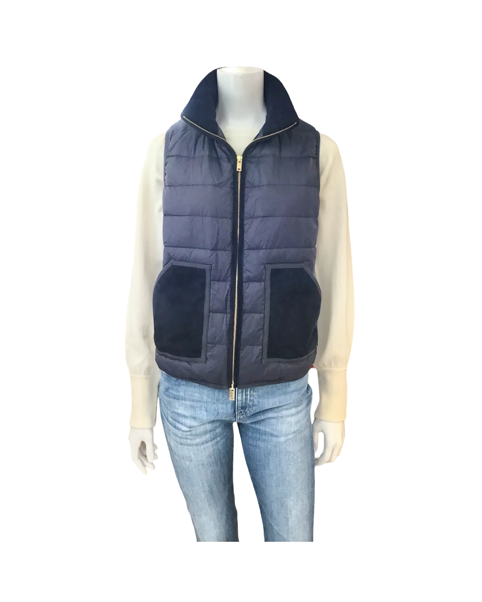 Introducing the Keeneland Vest - A classic fall staple with chic details such as suede trim, pockets and a luxurious cashmere collar.