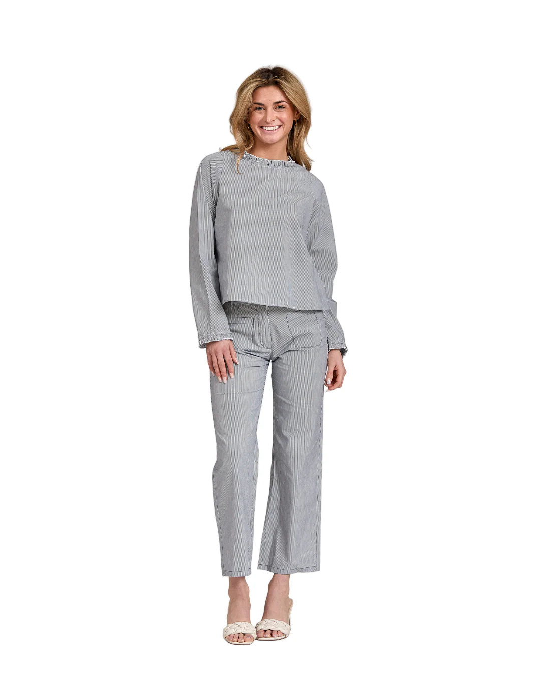 These cool cropped Lily Pants feature a playful front pocket that adds both style and convenience. Perfect for mixing and matching, they pair effortlessly as a set with the Margot Top in black stripes for a fun, coordinated look. Comfortable and cute, they’re ideal for days when you want to feel stylish with a relaxed vibe.
