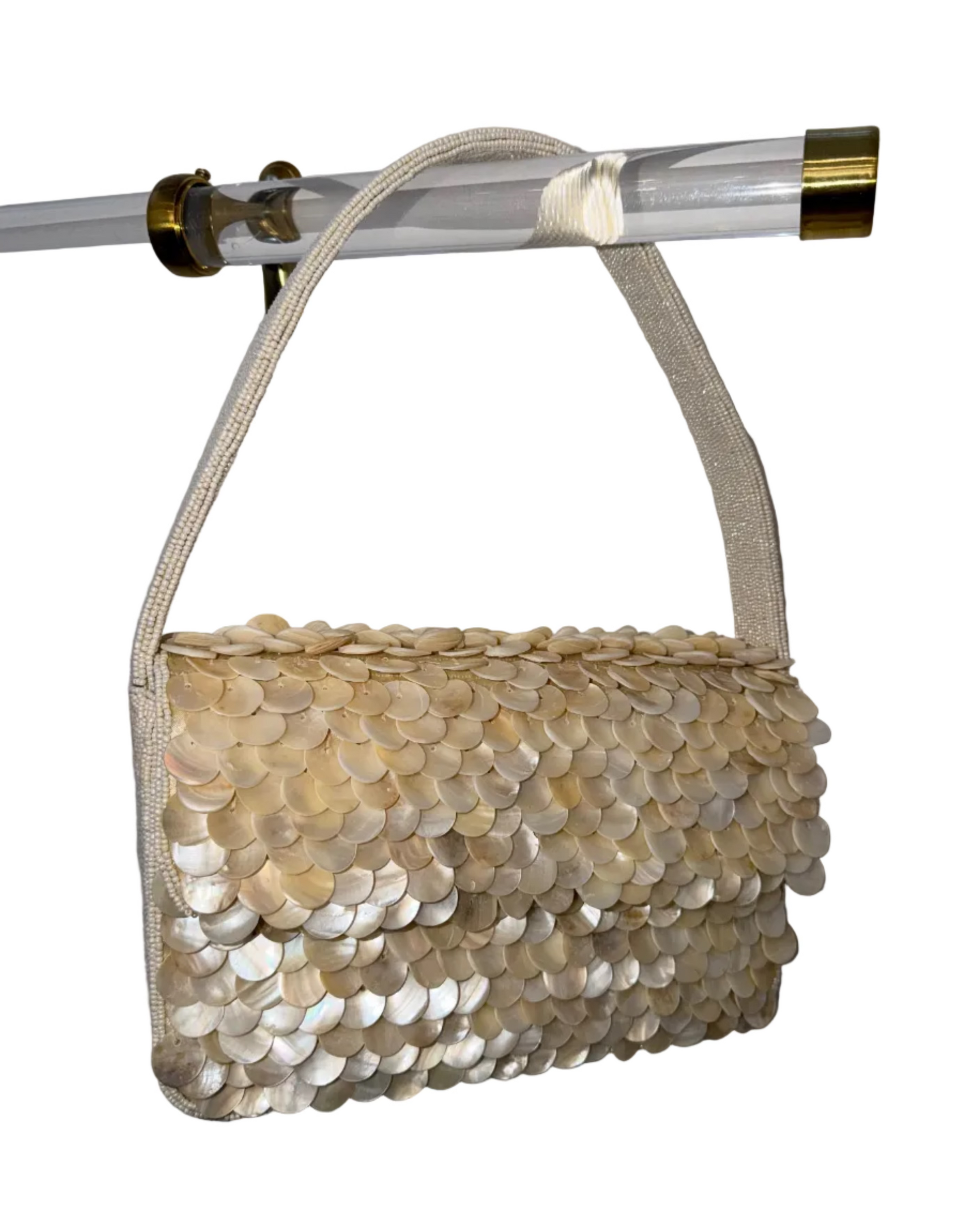 Dive into summer style with this handmade shoulder bag, adorned with delicate sea shells and shimmering mother-of-pearl beads meticulously hand-crafted for a one-of-a-kind look. Carry the coastal vibes and beach days with you wherever you go.