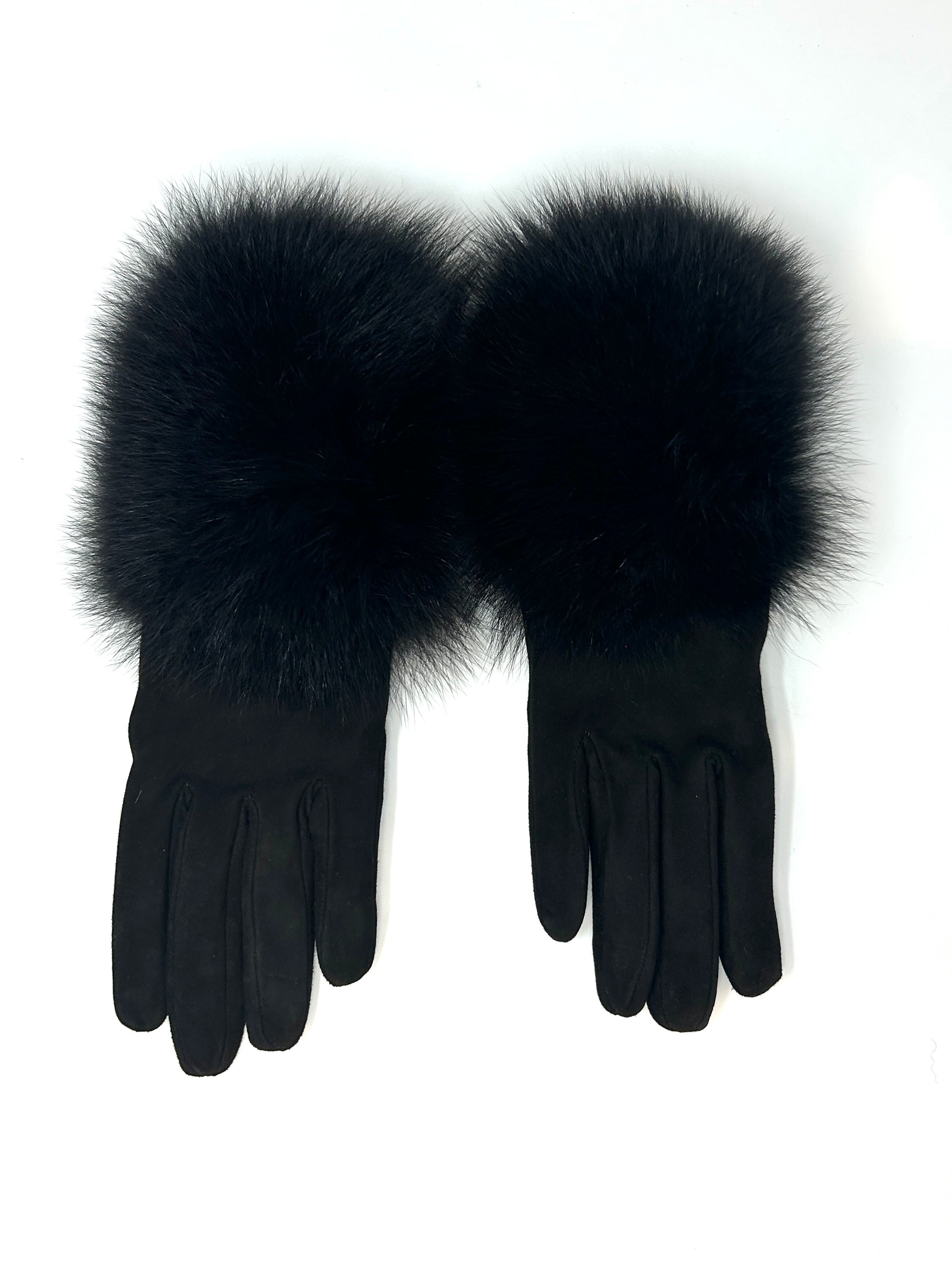 Experience the perfect blend of classic suede softness with a playful touch of luxurious fox fur. Crafted in Italy, these black gloves wrap your hands in high-quality warmth and style that’s both timeless and fun.